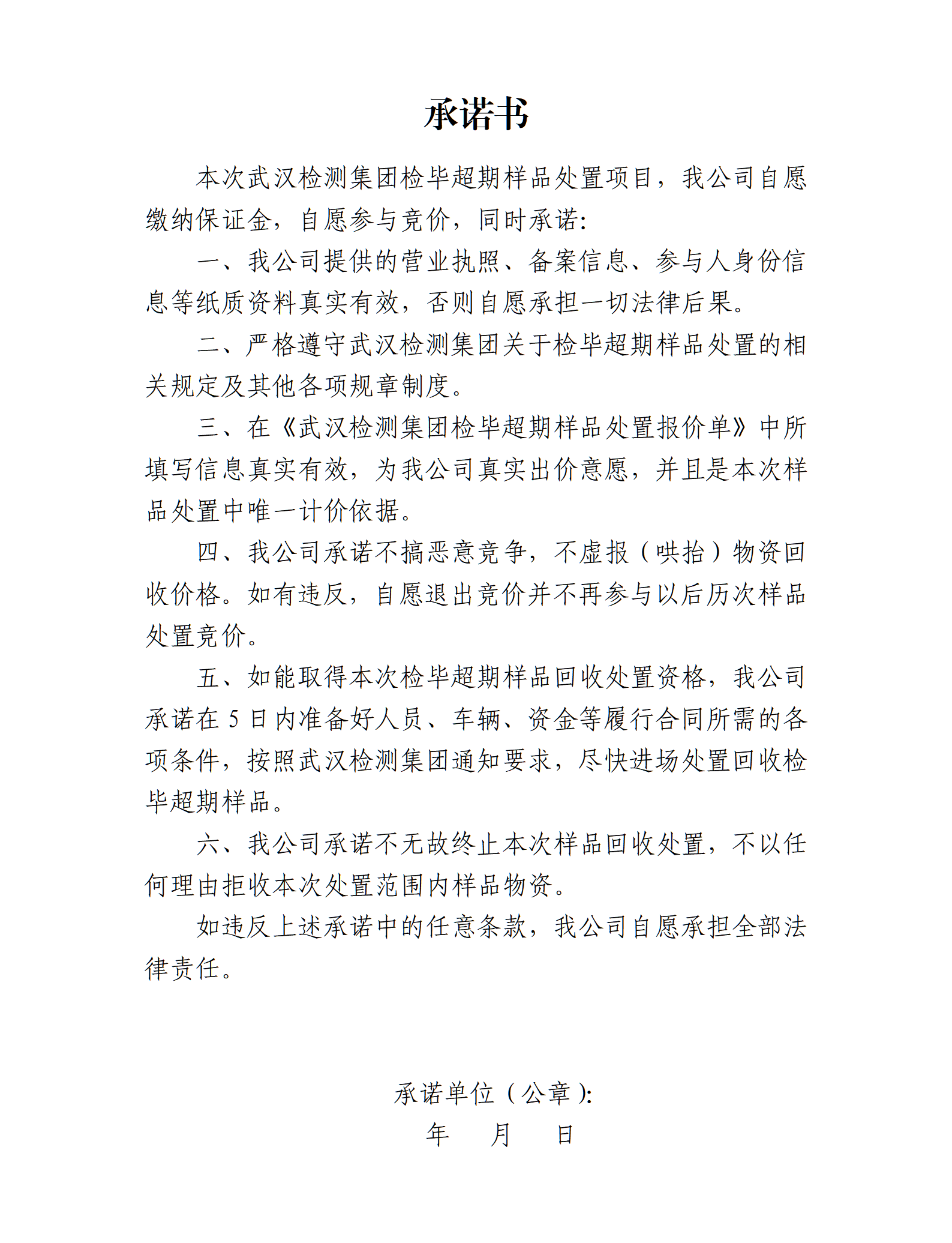 ? (三)本次樣品回收處置由武漢檢測集團紀檢監察進行全程監督。監督電話:027-68854001。